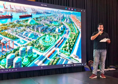 Durante la jornada, los grupos contaron con la guía de especialistas del ecosistema energético e industrial para abordar problemáticas de sectores estratégicos como operaciones portuarias y aeroportuarias, transporte de carga terrestre y ferroviario, e industria química. Las propuestas apuntaron a aplicaciones futuras con potencial de implementación en la región.